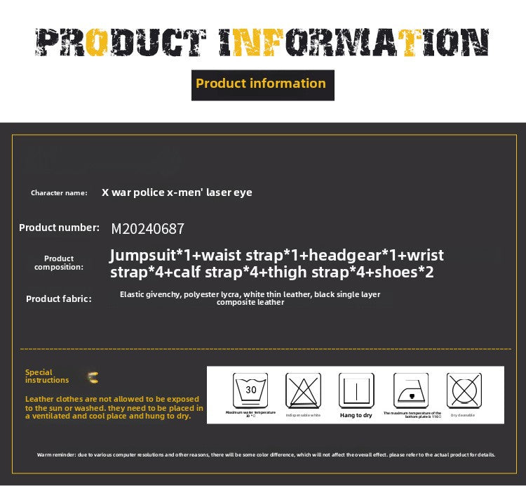 En règle générale, la couleur et le design réels seront plus proches de ceux des mannequins que du personnage. Pour les produits ne comportant que des images de personnages, la couleur et le design réels seront ceux de l'image du personnage sur notre site, et non des autres images. Les couleurs réelles peuvent légèrement différer des images en raison de l'éclairage et des variations de résolution des écrans.